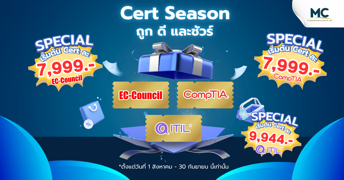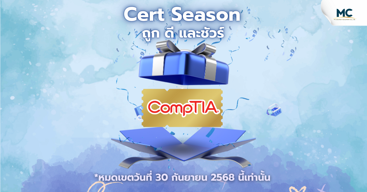 หากคุณกำลังมองหา Voucher สอบ IT Certification ราคาประหยัด ที่สามารถใช้งานได้จริง สอบได้ทั้ง ที่ศูนย์สอบ Pearson VUE หรือ สอบออนไลน์จากที่บ้าน วันนี้ MC Edutech Solution จัดโปรโมชั่นพิเศษ Cert Season – ถูก ดี และชัวร์ 🎓 โปรโมชั่นพิเศษ CompTIA Voucher CompTIA PenTest+ ...