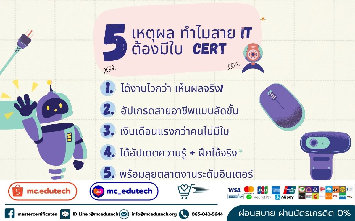 ในยุคที่สาย IT แข่งขันกันสูง ใครมี “ใบเซิร์ต (IT Certification)” ย่อมได้เปรียบกว่าหลายเท่า ไม่ว่าคุณจะเป็นนักศึกษาที่กำลังหางาน พนักงานที่อยากเลื่อนตำแหน่ง หรือมือใหม่ที่กำลังเปลี่ยนสายงาน ใบ Cert สามารถเป็นใบเบิกทางสู่ความสำเร็จได้อย่างแท้จริง